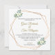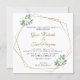 En vacker inbjudan, elegant bröllop. Med ett guld-geometriskt ram och blommigt och grönt inslag har inbjudan en fantastisk utformning som säkert imponerar på dina vänner och familj.