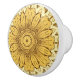 Keramisk knopp i den geometriska daisyn mönster i senap guld, beige och chokladbrun