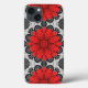 Telefonfodral i den geometriska daisyn mönster i djup röd/krimson på en svart och vit mönstrad bakgrund