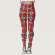 Leggingar i en geometrisk daisy mönster i djup röd/krimson på en svart och vit mönstrad bakgrund