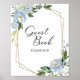 Geometrisk dammig blå blomster gästboksskrivning poster