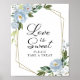 Geometrisk dammig blå blomster Kärlek är sött skyl Poster