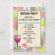 En modern inbjudan till designfödelsedagskalender. Bakgrunden är en illustration av abstrakten med stora och små fyrkanter och rektanglar med överlappande linjer. Den här kreativet har kontrasterande pasteller och rättigheter i färg av grädde, ro rosa, kalkgrön, ljusbrun och ljusblå färg. Centrumet har en parchment struktur box med svart gräns, ange information om personlig party. Vid grund finns ett vin glas fyllt med rött vin och en bit kaka. Underbar för stil-födelsedagsfester för kakor och cocktails för vuxnor.