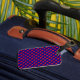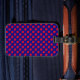 Geometrisk design i röd cirkel på marin blå bagagebricka