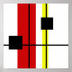 Modern abstrakt-geometrisk design med svarta, röda, gult linjer och svarta fyrkanter på vit bakgrund