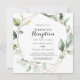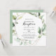 Denna geometriska eleganta guldgröna bröllopsmottagning inbjudan är perfekt för en enkel efterbröllopsfest. Designen har handmålade botaniska gröna eukalyptusblad som pryder en gyllene geometrisk ram.