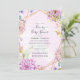 Lila och guld-geometrisk möhippa- eller babyduschinbjudan med accenter av lila och blått.
