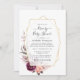 Vattenfärgsboho-blommigt genom möhippa- eller babyduschinbjudan med peonier och ro med ett guld-geometriskt ram.