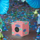 Geometrisk favoritruta för blåa partier i fisk presentaskar