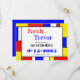 En inbjudan till roligt och funky som är lika roligt som du - ett nostalgiskt utseende på mitten av sextiotalet med ett fet typsnitt i coola parat med primär färg av gult, blått och rött konturerat i svart i geometriska former i stil i Mondrian.