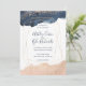 Geometric bröllopsinbjudan i marinen, guld och . Detaljerna är inramade i en guld-geometrisk form med en stänk av vattenfärg i flottan överst och vid grund. Dammbristningar i guld dekorerar kortets överkant och grund. Kortets baksida är designad med guld rand i ett diagonalt mönster över en marin blå vattenfärgsbakgrund. Du kan lägga till all information om bröllop i kortet. Om du behöver göra fler ändringar kan du klicka på anpassa länk/knapp och ändra sak som storlekt teckensnitt, stil, teckensnitt färg etc.