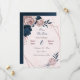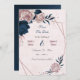 Romantisk marin blått och rosa blommor på ett geometriskt ram sparar datuminbjudan Uppgifterna i glitter simuleras