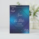 Ställ in tonen för din stora dag med den här geometriska futuristiskan 80 sekunder stil galaxy retro Vibe spara datumet. Med abstrakt, sci-fi inslag och en skakande lunar himmel fylld med tvillingstjärnor är det perfekt för ett modernt bröllop med kosmisk tvist. Den här återgivningen sparar datumet med ett fet himmel-kvällsformat - perfekt för att par ska kunna hitta en funky, unik och icke-fotobaserad metod för att tillkännage sitt bröllop under stjärnorna.