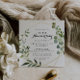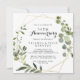 Denna geometriska guld tropiska 50-års bröllopsdags inbjudan är perfekt för en romantisk bröllopsdagsfirande. Designen har handmålade vackra gröna blad som pryder en gyllene geometrisk ram.