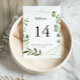 Geometrisk guld tropisk grön kalligrafi bröllop bordsnummer