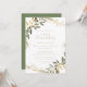 Denna geometriska guldgrönska 50-års bröllopsjubileumsinbjudan är perfekt för ett modernt evenemang. Designen har en vacker gyllene geometrisk ram med eleganta gröna blad. Ändra numret för att fira alla milstolpar för årsdagar.