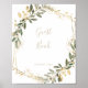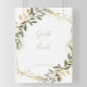 Denna geometriska guldgrönska höst gästboksskrivelse är perfekt för ett modernt bröllop eller brudvisning. Designen har en vacker gyllene geometrisk ram med eleganta gröna blad.