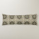 Intrikat fyrkantigt kakeldesign som visar ett geometriskt mönster av gyllene former arrangerade symmetriskt över en svart yta, som utstrålar sofistikering, elegans och lyx genom sin moderna, rena och minimalistiska estetik.
