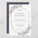 Geometrisk guldram dammblå blommor bröllop inbjudningar