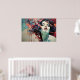 Ett digitalt mästerverk som smälter samman mänsklig skönhet med geometrisk abstraktion. Levande korall- och turkostoner exploderar runt ett lugnt ansikte och skapar en hypnotisk kontrast mellan inre lugn och yttre energi. Modern konst idealisk för att dekorera med sofistikation.