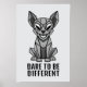 Det här poster ett svart och vitt geometriskt hund design med ett modernt, konstnärligt ansikte som betonar dess unika egenskaper. Den inspirerande frasen "Våga vara annorlunda" kompletterar den övergripande utformningen. Denna poster är perfekt för hundälskare och konstentusiaster som uppskattar kreativitet och individualitet.