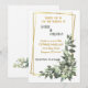 Denna inbjudan till tropiska grönt löv är perfekt för ett enkelt bröllop. Utformningen har handmålade vackra löv för grönt, som lägger till ett guld-geometriskt ram. Anpassa texten och meddelandet med bara några klick.