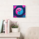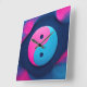 Geometrisk jämvikt: Vibrant Yin Yang Mönster. En grafisk snyggt med en unik tolkning av yin yang-symbolen i nyblått och rosa, som representerar balans och dubbelhet.