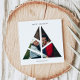 Minimalistisk helgdesign med ett geometriskt julgran lager, för att anpassa med din egen text och familjebild.