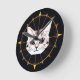 Geometrisk kattdesign omgiven av gyllene stjärnor rund klocka