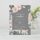 Denna geometriska klassiska ros grå bröllopsinbjudan är perfekt för en rustik efterfest efter vigseln. Designen har eleganta akvarell dammiga rosa rosor och grönska, snyggt sammanställda i vackra buketter mot en grå bakgrund.