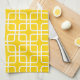 Gul modern geometrisk mönsterkökshandduk för Freesia. Dessa kökshanddukar/teahanddukar är perfekta för uttorkningdisk och glasföremålet, allmän kökanvända eller enkelt som ett stilfullt dekorativt handlag för kök. Gjort i den washable USA och maskinen. En idealgåva för dusch, bröllop, födelsedag eller inflyttningsfest. Tillgängligt i raddafärger.