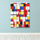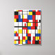 Den här målningen är en abstrakt av svart linjer och rektanglar i primärt färg av rött, blått och gult. Det är en representation för De Stijl-konströrelsen, som försökte uttrycka harmoni och ordning genom geometriska former och grundläggande färg. Målningen framkallar en känsla av balans och tydlighet, eftersom färg och former skapar en dynamisk kontrast och rytm
