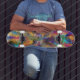 Färgfulla Geometric Triangles Oavsett om du håller på att mala på halvröret eller kickflips på gatan, så har den här tävlingsformade skivan en överlägsen popform! Våra däck är gjorda av den bästa hårda kapseln från sten och med vår processaa utskrift av ett slag. Du får den bästa skateboard som finns i världen.