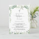 Denna geometriska minsta eukalyptus-baptisminbjudan är perfekt för en modern baby-baptism eller ett forcerande. Konstruktionen har vattenfärgsritad elegant botaniskt eukalyptus grenar och löv, med adorering av geometriskt ramar.