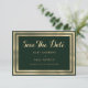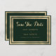 Geometric snyggt modern Forest grönt och guld elegant bröllop Spara datuminbjudan. Denna lyxenkla mörk grönt inbjudan och inbjudan till guld är perfekt för alla klasser och sofistikerade evenemang eller tillfälle. Den här krävande och bländande designen är perfekt för trendiget och snyggten eller paret. Anpassa den här designen med egen information om meddelande och personlig. Alla designer skrivs ut.