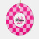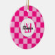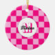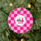 Kontrollerad ljusstrålande shock rosa geometrisk retro Monogram julprydnad. Kontrollerade rutor för den geometriska retro-Helgdag från mönster för henne. modern shock rosa för vintage. Anpassa med din anpassningsbar till början och namn.