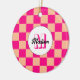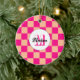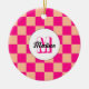 Kontrollerad persikogeometrisk shock rosa Monogram ornament. Kontrollerade rutor för den geometriska retro-Helgdag från mönster för henne. Vintage Peach shock rosa modern schackare. Anpassa med din anpassningsbar till början och namn.