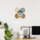 En modern abstrakt väggutskrift med överlappande geometriska cirklar i muterade toner av beige, terracotta och blue. Med sin balanserade symmetri och minimala stil ger den här grafiken en contemporary till vardagsrum, rum eller kontorsutrymmen.