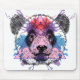 Denna design presenterar en panda som ansikte i triangelram med vattenfärgbläck tappar.
