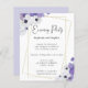 Budgetgeometriskt Guld Ram med inbjudan till Lila Periwinkle Blommigt Bröllopsfest. Ett värde för pengarna som är mindre än 4,5 x 5,6 tum och som är standard för alternativet med halvglans, vilket rekommenderas för inbjudningar och är en liknande tjocklek som ett vykort. Sateringsalternativet är mycket tunnare.