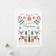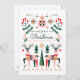 En charmig symmetrisk design med två renar prydda med geometriska mönster, omgivna av små träd och juldekorationer. Användningen av rosa, gröna och röda nyanser skapar en fantasifull, nordiskt inspirerad julstämning med stiliserade naturelement och traditionella festliga former.