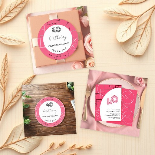 Tack för snyggtens födelsedag-party underlägg i chicens rosa, svart och vitt geometriskt mönster.