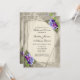 En elegant geometrisk design med rustik bakgrund och violer. Denna provinbjudan är en del av en komplett svinvitation.