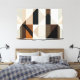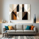 Detta abstrakta verk blandar geometriska former i jordnära och neutrala toner och skapar en harmonisk balans mellan struktur och mjukhet. Skärningspunkterna mellan trianglar och rektanglar antyder rörelse och djup och inbjuder till stillsam betraktelse av visuell ordning i ett spel av ljus och skugga.