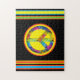 Alla färger i denna grova moderna utformning är anpassade. Den här slående designen består endast av fem enkla former (fyra rektanglar och en cirkel) som du kan välja vilken färger som helst för fyllningen och gräns. Du kan aktivera eller inaktivera bakgrundsfärgen mönster och välja valfritt helfärgat färg som du vill ha som bakgrund (visas här i svart) om du vill att färgämnet ska vara avstängt. Även fredsteckenet är anpassade. spela upp med bildfiltren för olika färg-effekter, ändra storlek på den eller ersätta den med en egen bild eller ett monogram. Se till att roligten skapar det här öga-fångstpusslet verkligen ditt eget!
