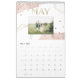 Det här trendiget, snyggt 2024, har faux-geometriska utformningar och prickade accenter, med rosa vattenfärgsstänk och olika personliga foton för varje månad.