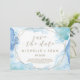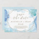 Den här geometriska vattenfärgen sparar datumkortet som perfekt för ett modernt bröllop. Utformningen har mjuk himlar-blått och tealvattensfärg överdragen med geometriska former i glatt faux champagne guld glitter. Observera: Den här designen har ingen riktig champagne guld glitter. Det är en högkvalitativ grafik som framstår som guld glitter.