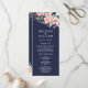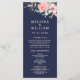 Bröllopsprogrammet Blommigt för marktäckande för marktäckning. Vackra bröllopsprogram med vit text på midnattsflottan blå, med ett unikt koppargeometriskt ram och ett digitalt justerat tryck av en handmålad blommigt med vattenfärg arrangemang i nyanser av rosa, koral, grönt och blått grått. Anpassa med dina bröllop-detaljer på framsidan och baksidan. Vi inbjudan besöker vår butik, Austen & Grace, för att se vårt växande sortiment av designerpapper och hemmaperier. Om du behöver matchande produkter eller hjälp från extra kontaktar du oss via Zazzles kontaktknapp eller e-post till oss på: contact@austenandgrace.com