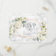 Modern och trendiget, den här bröllopsinbjudan till OSA har en ytlig koppargeometri som är förskönad med vattenfärgsvit blommigt och eucalyptus grönenery blommigt, över en faux vit marmor struktur. Detta är alternativet utan måltider. En del av en matchande bröllop-uppsättning. Copyright Elegant Inbjudan. Alla höger reserverade.