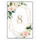Geometriskt akvarell fjäderblommor Bordnummer | Elegant och feminin bordskort med akvarellillustrationer av vita, persika och rosa rosor och peonior, bladaccent och falsk folie geometrisk ram. Detta blomsterkort är perfekt för vår- och trädgårdsevenemang.